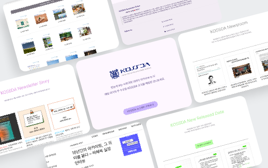 새롭게 구축된 KOSSDA 뉴스레터 웹사이트에서는 이 모든 이야기를 한 곳에서 더욱 편리하게 만나볼 수 있습니다. 지난 뉴스레터들을 손쉽게 찾아보고, 관심 있는 콘텐츠를 검색하며, 여러분의 소중한 의견도 자유롭게 나눌 수 있습니다. 데이터를 만드는 사람, 사용하는 사람, 그리고 그들을 연결하는 KOSSDA의 이야기를 함께 만나보시기 바랍니다. 이제 KOSSDA 뉴스레터는 웹에서도 더욱 편리하게 만나보실 수 있습니다. 매달 발행되는 스토리는 물론, ‘아카이브’에서 지난 뉴스레터들을 손쉽게 찾아볼 수 있고, ‘뉴스룸’에서는 KOSSDA가 언론에 어떻게 소개되고 있는지 주요 뉴스와 보도자료를 통해 확인하실 수 있습니다. 또한 ‘커뮤니티 토크’에서 뉴스레터에 대한 여러분의 소중한 의견을 자유롭게 나눌 수 있습니다. 뉴스레터의 어떤 점이 좋았는지, 앞으로 어떤 콘텐츠를 만나고 싶은지 들려주세요. 여러분의 의견이 담긴 뉴스레터를 만들어 가고자 합니다. 데이터를 만드는 사람, 사용하는 사람, 그리고 이들을 연결하는 KOSSDA의 이야기를 뉴스레터 웹사이트에서 만나보시기 바랍니다. |