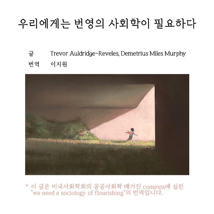 좋은 연구는 때로 익숙한 질문을 뒤집는 데서 시작됩니다. 이번 호에는 함께 읽으면 좋을 만한 글을 번역 소개하여, 새로운 질문을 함께 탐색하려 합니다. "우리에게는 번영의 사회학이 필요하다"는 미국사회학회 Contexts에 실린 에세이로, 문제의 원인이 아닌 해결의 기제를 묻습니다. 새로운 시각을 더해 더 좋은 연구방향을 찾는데 도움이 되시길 바랍니다. |