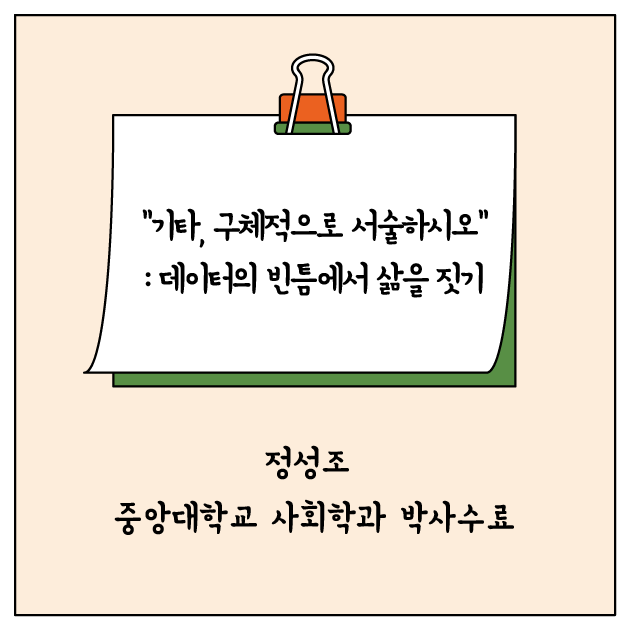 “기타, 구체적으로 서술하시오”: 데이터의 빈틈에서 삶을 짓기 |
